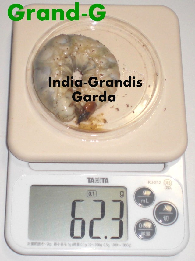菌糸ビンの交換を行ったインドグランディス Garda96.5血統の幼虫です。