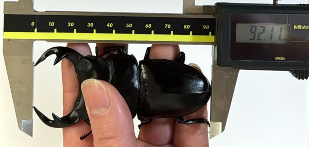 まずは1頭目の92.2mmをご紹介しますが、2025年1月に紹介していました61.7g幼虫の羽化結果となります。 お送りいただいた飼育履歴をそのまま掲載しますので御覧ください。 種親 血統 ♂ Garda93.7血統(Garda95.6同腹) 86.5o ♀ Garda94.1血統 52o 飼育データ 1本目:2024年7月21日 Grand-Grow 菌糸カップ 2本目:2024年10月23日 Grand-Master 2000cc 幼虫体重22g 3本目:2025年1月24日 Grand-Master 2000cc 幼虫体重61.7g 2025年7月3日 蛹化 2025年7月16日 体重測定42.4g 人口蛹室へ移動 2025年8月16日 羽化 92.2mm |