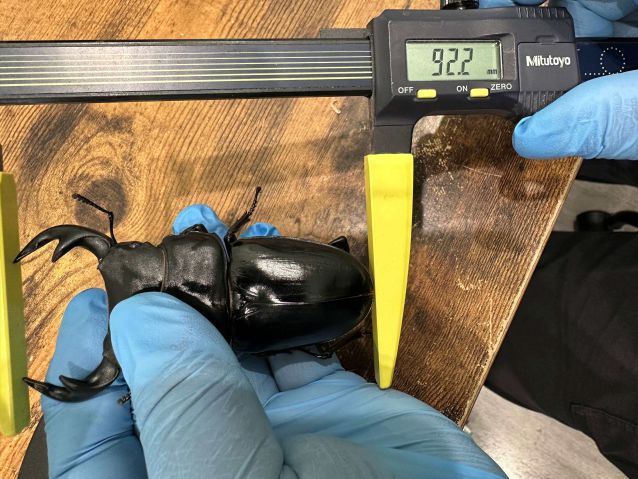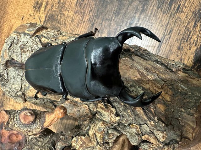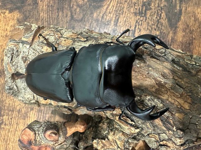 まずは1頭目の92.2mmをご紹介しますが、2025年1月に紹介していました61.7g幼虫の羽化結果となります。 お送りいただいた飼育履歴をそのまま掲載しますので御覧ください。 種親 血統 ♂ Garda93.7血統(Garda95.6同腹) 86.5o ♀ Garda94.1血統 52o 飼育データ 1本目:2024年7月21日 Grand-Grow 菌糸カップ 2本目:2024年10月23日 Grand-Master 2000cc 幼虫体重22g 3本目:2025年1月24日 Grand-Master 2000cc 幼虫体重61.7g 2025年7月3日 蛹化 2025年7月16日 体重測定42.4g 人口蛹室へ移動 2025年8月16日 羽化 92.2mm |