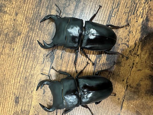 お客様のところより92.2mmと93.7mmが羽化しました。 当店の菌床を使用した菌種変更リレー飼育により作出されています。 上の個体が93.7mm、下の個体が92.2mmです。 両個体共に太くGarda血統らしさが出ていると思います。 それでは各個体を飼育履歴と共に紹介します。 |
