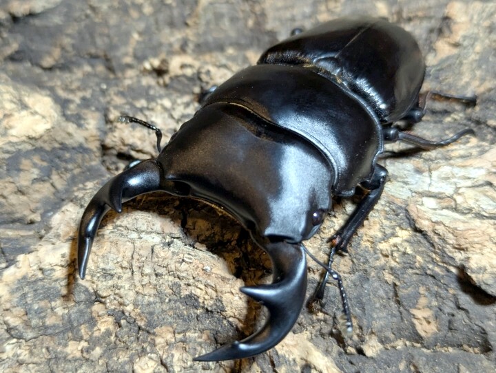 | ※サイズはデジタルノギス計測による最大値です。軽い顎ズレや大顎の若干の窪み、翅端からの腹部腹板先の若干の出等は完品扱いとしておりますのでご承知置きください。 |