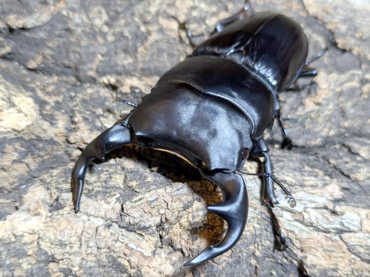 | ※サイズはデジタルノギス計測による最大値です。軽い顎ズレや大顎の若干の窪み、翅端からの腹部腹板先の若干の出等は完品扱いとしておりますのでご承知置きください。 |