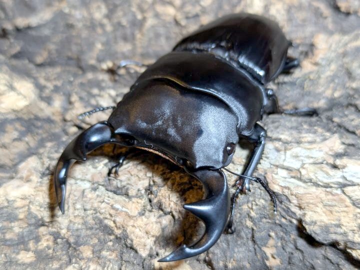 | ※サイズはデジタルノギス計測による最大値です。軽い顎ズレや大顎の若干の窪み、翅端からの腹部腹板先の若干の出等は完品扱いとしておりますのでご承知置きください。 |